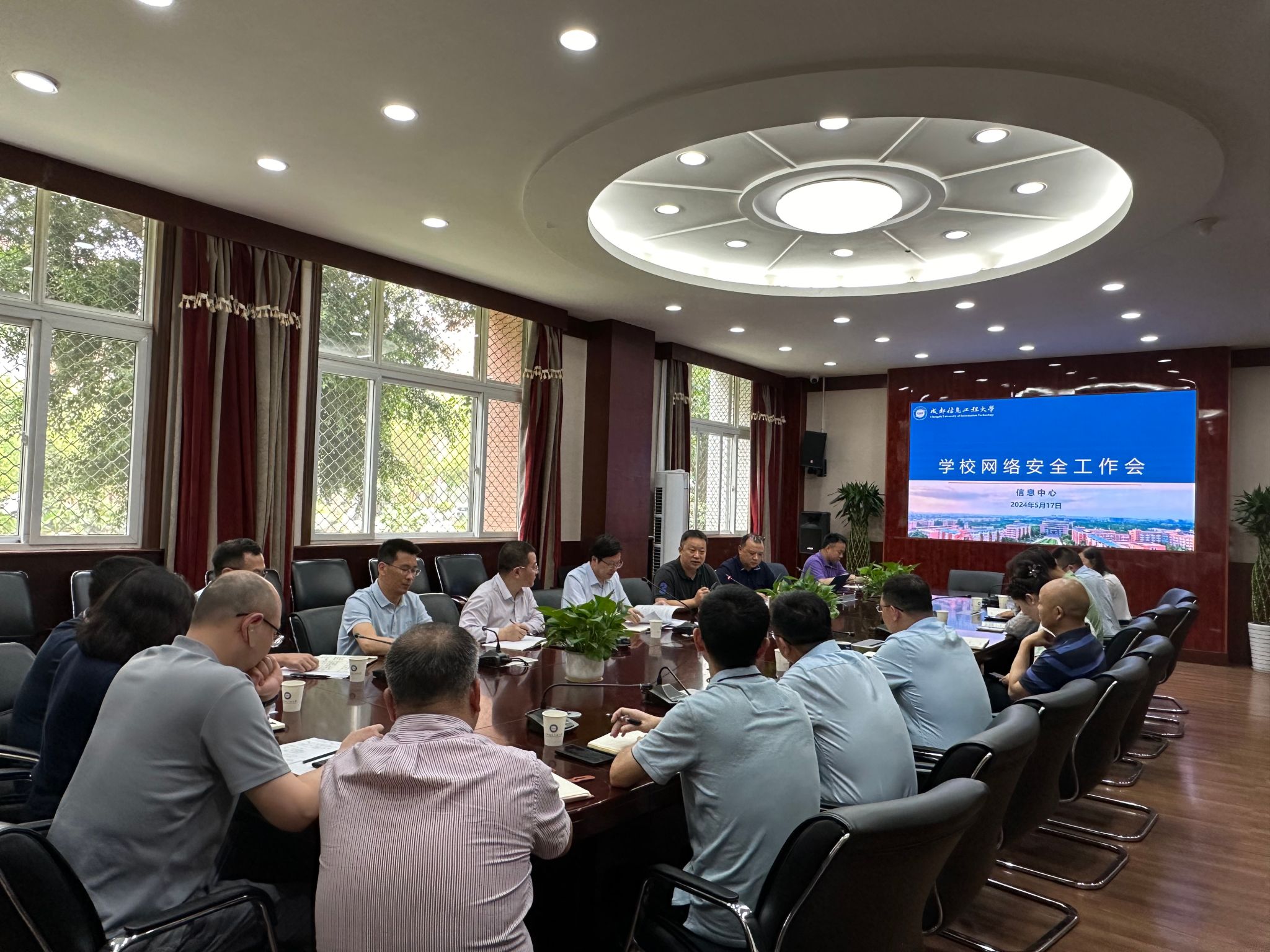 【本网讯】5月17日上午,学校网络安全工作会议在航空港校区六会议室召开。学校党委书记沈火明、副校长舒红平,党政办公室、党委宣传部、党委学生工作部、党委保卫部、人事处、国内合作处、教务处、研究生处、科技处、招生就业处、计划财务处、后勤基建处、实验与设备管理中心、管理学院、继续教育学院、网络空间安全学院、信息中心负责人参加会议。会议由舒红平主持。