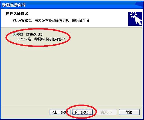 9.默认选择“802.1X协议”,点击“下一步”。