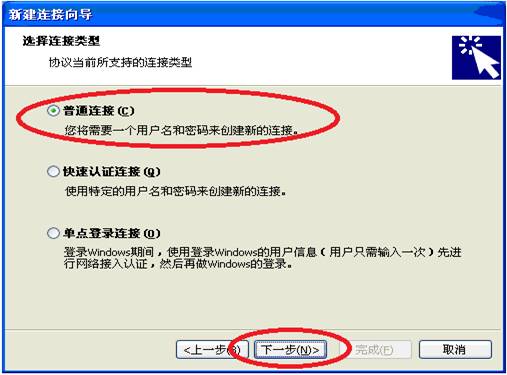 10.选择“普通连接”,选择“下一步”。