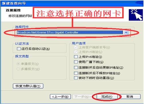 选择好网卡后,点击“完成”。