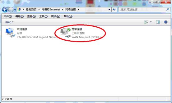 亦可以在“网络和共享中心”内找到建立的宽带连接,如下图;