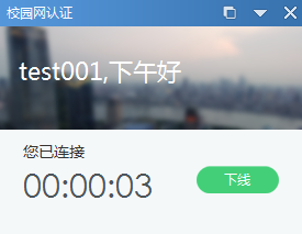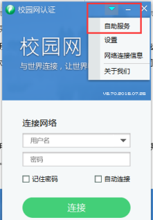 2、校园网用户:用户账号为学号,密码与原有认证系统一致,选择“校园网”登陆即可,如下图所示:(首次登录默认为校园网,会根据账号类型下发不同服务到客户端)